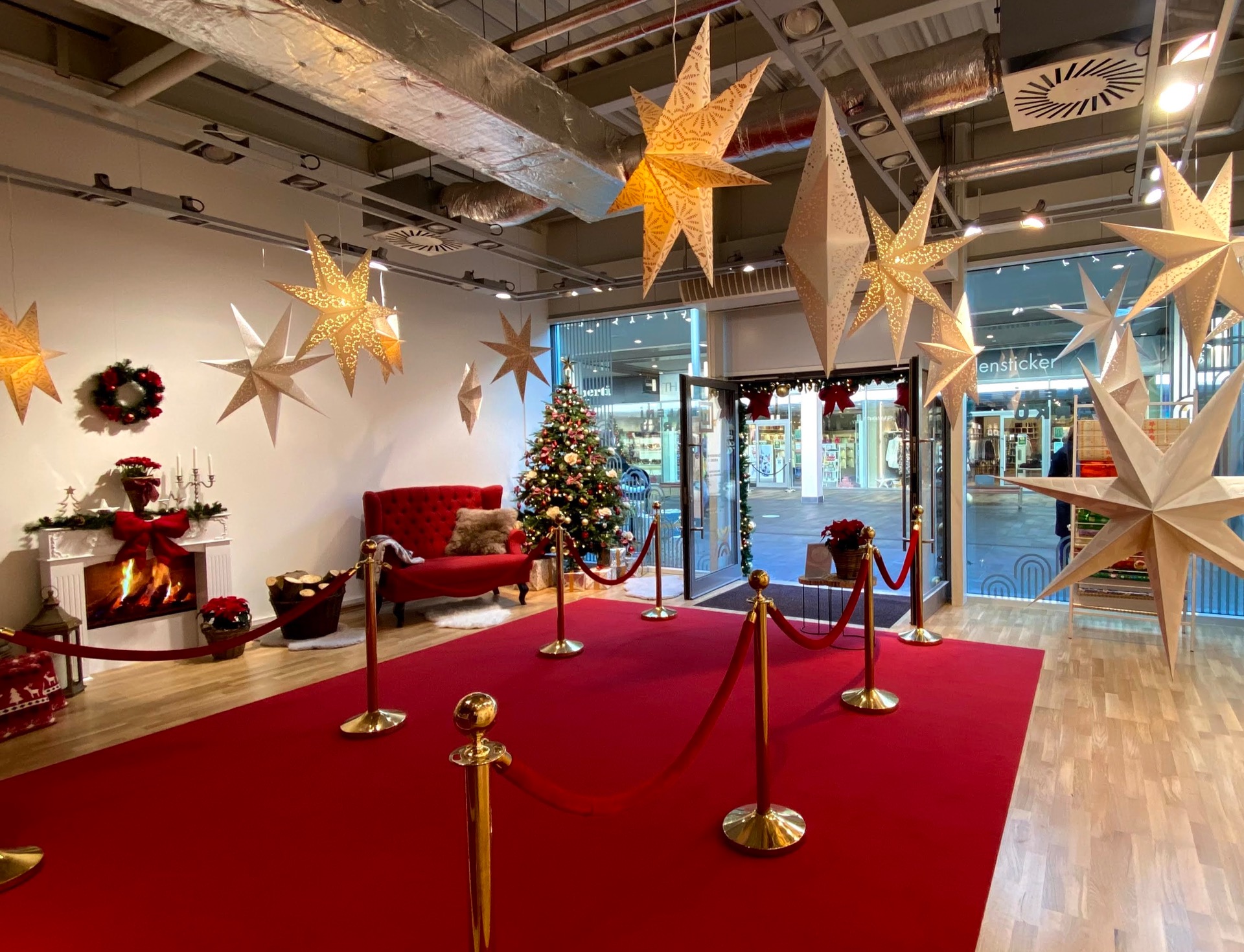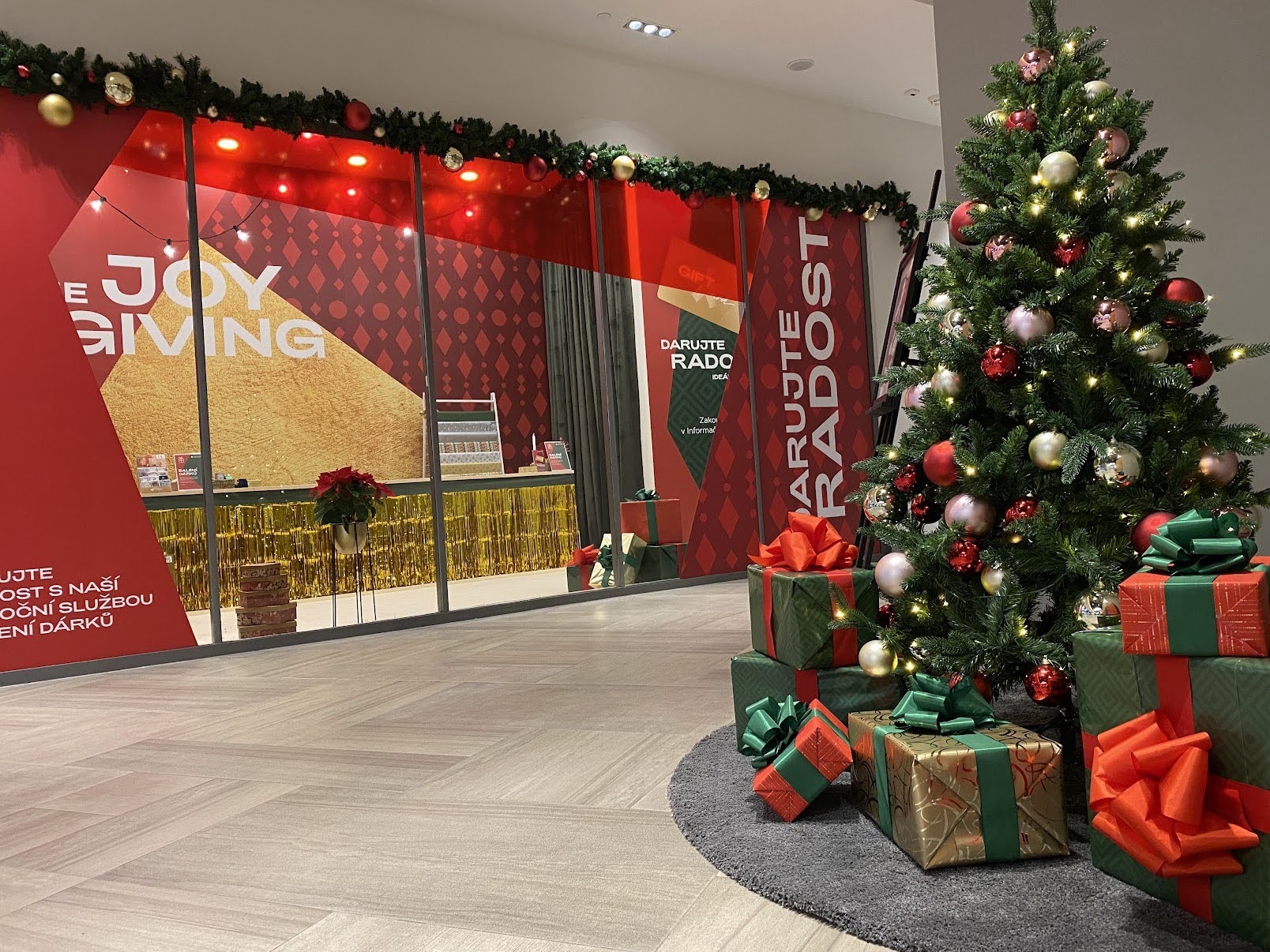 V obchodních centrech navrhuji kromě výloh např. i vánoční jednotky, kde probíhá balení dárků a prodej vánočního zboží.