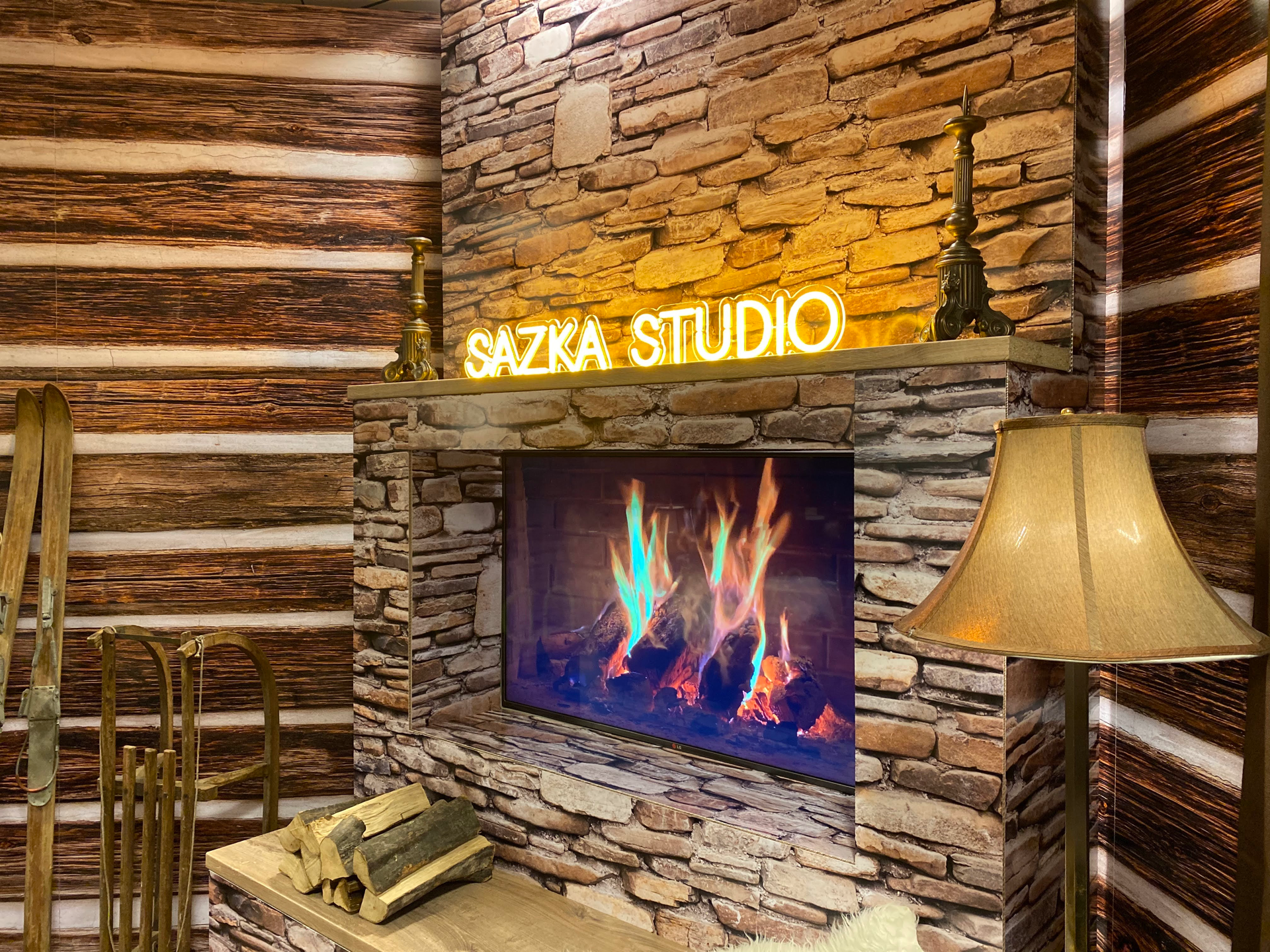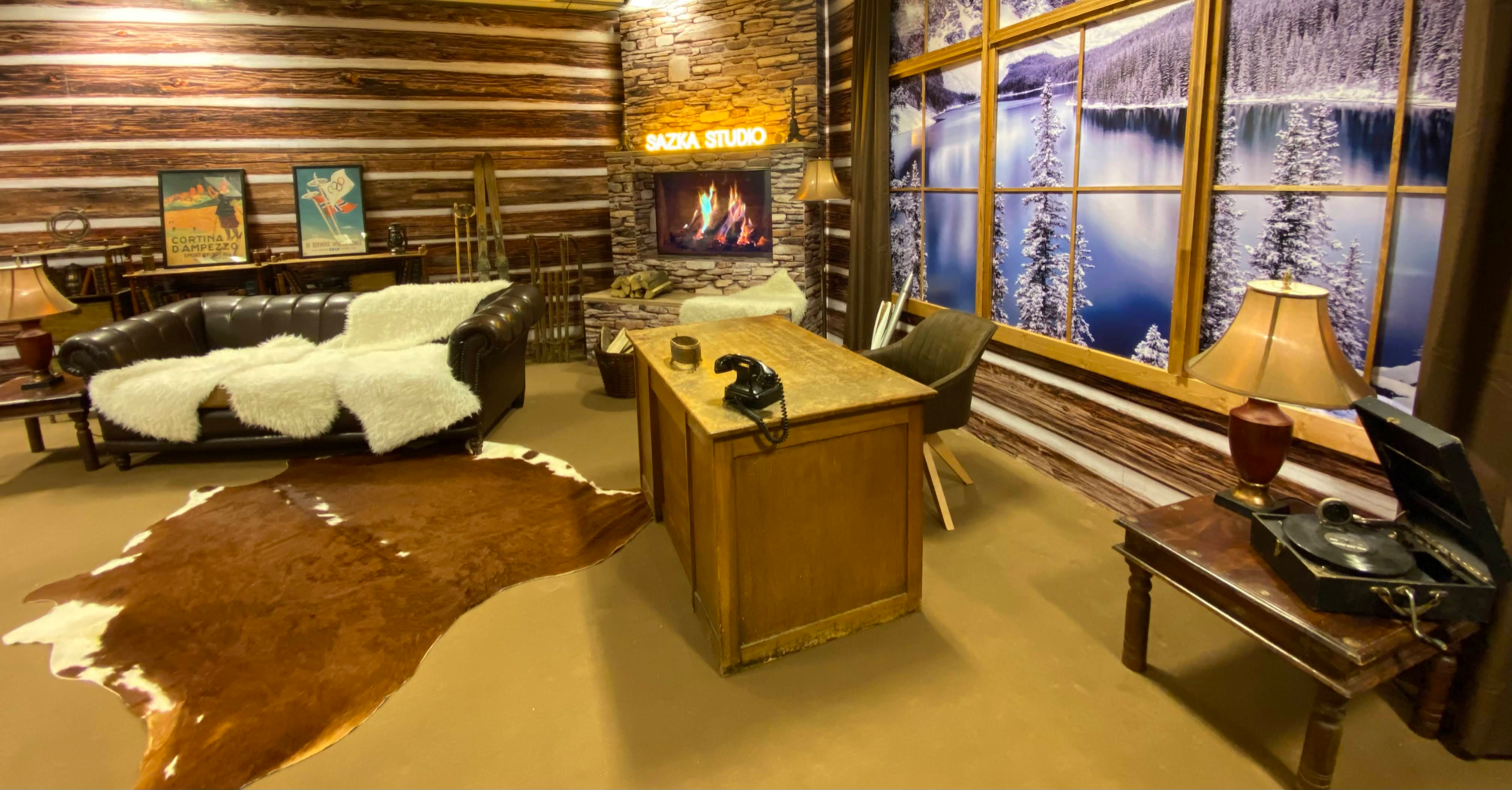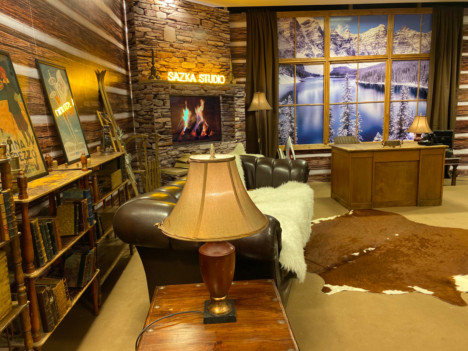 Zadání znělo - v prázdném televizním studiu navrhnout a realizovat design ve stylu horské chaty. V tomto studiu probíhaly rozhovory se sportovci a dalšími osobnostmi sportu v rámci zimní olympiády v Pekingu.